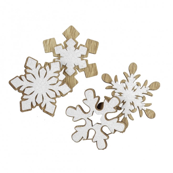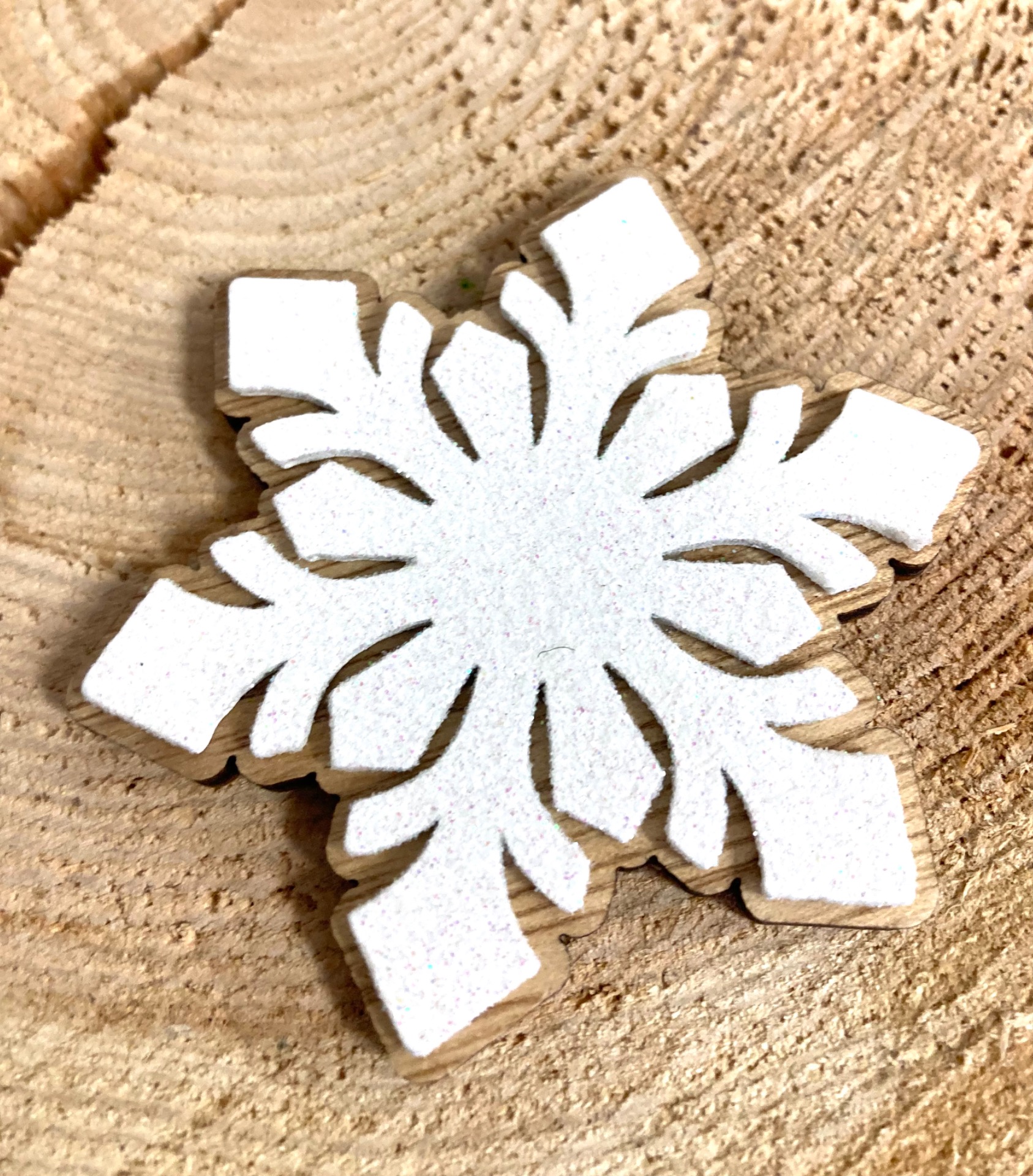 Holzdeko, Schneeflocke, 8 x 7 cm,natur weiß Glitzer